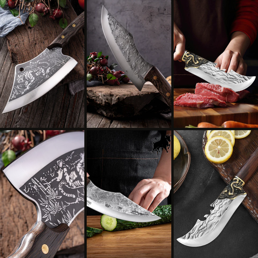 Set of 3 Handcrafted Forged Knives with Protective Sheaths